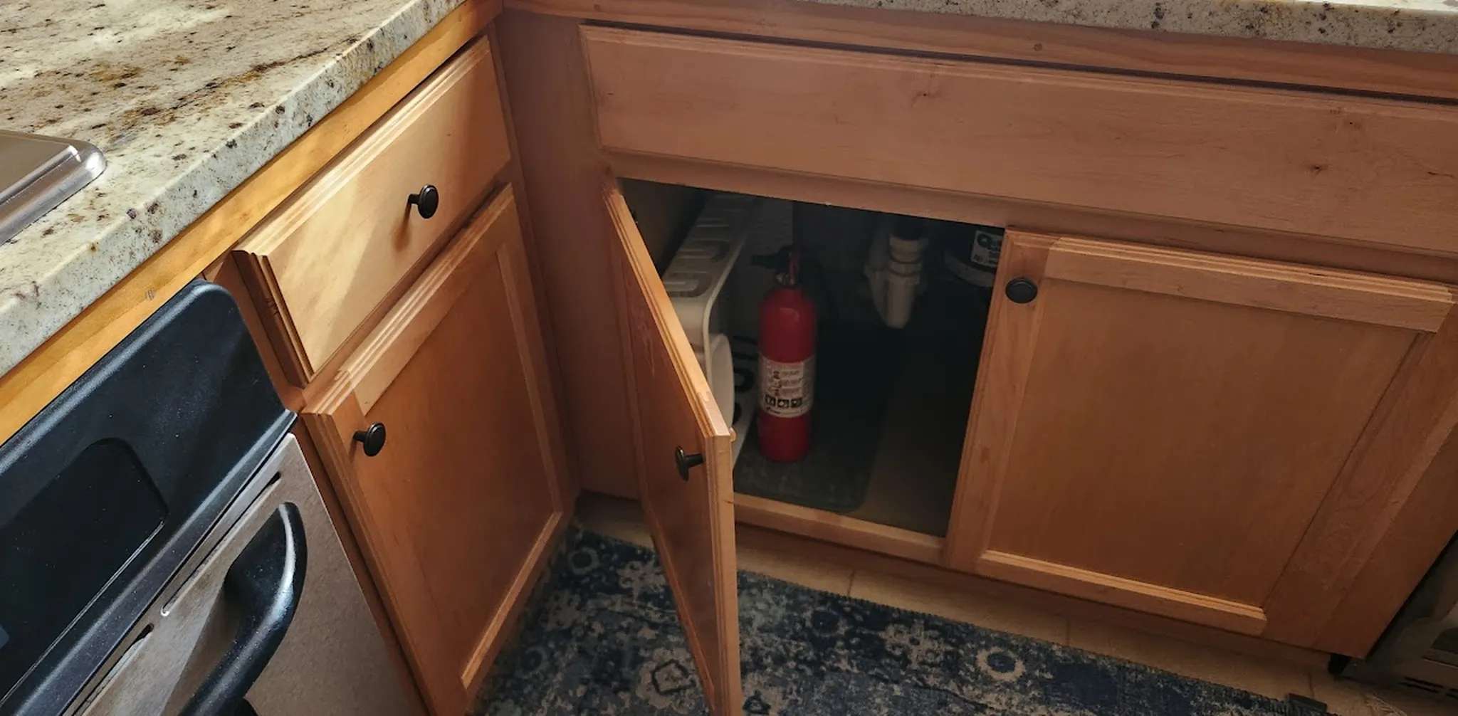 There are smoke/CO detectors in all bedrooms and common areas. The fire extinguisher is located in the hallway closet as well as in the kitchen cabinet under the sink.